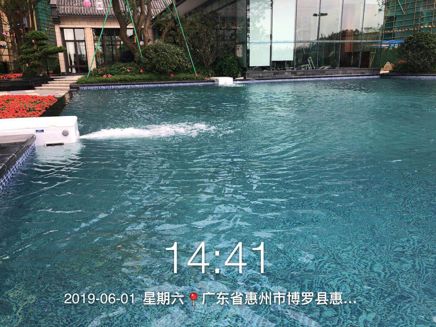 經過公司各級領導及雄厚的技術實力,完善的服務體系,精心細致制造于2019年6月1日惠州方圓東江月島泳池竣工啦!