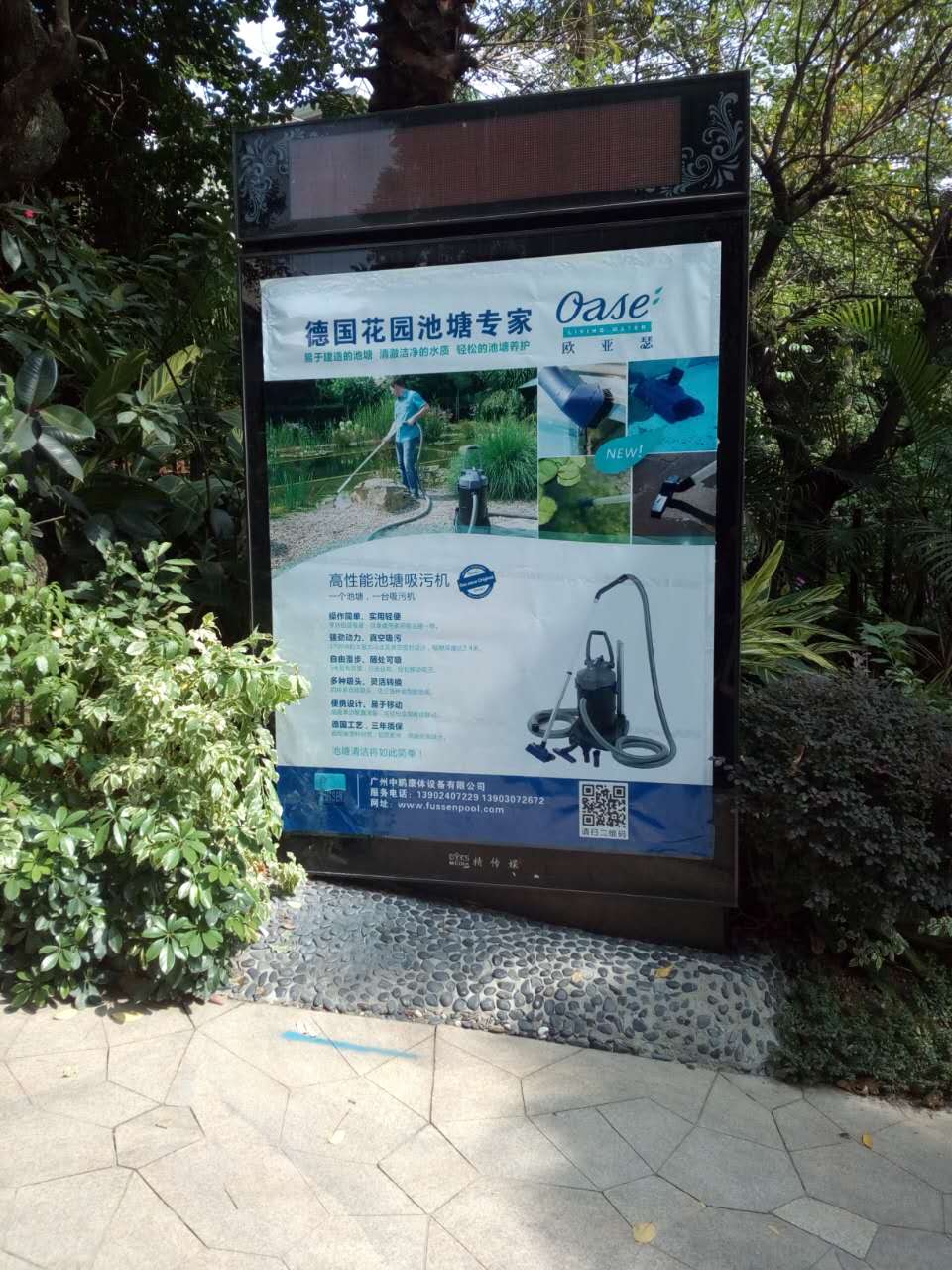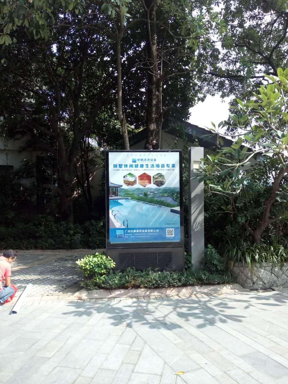 我司(廣州中鵬康體設(shè)備有限公司)自2016年11月21日于頤和高爾夫莊園設(shè)置了泳池/魚池設(shè)備的燈箱宣傳牌,相關(guān)圖片如下: