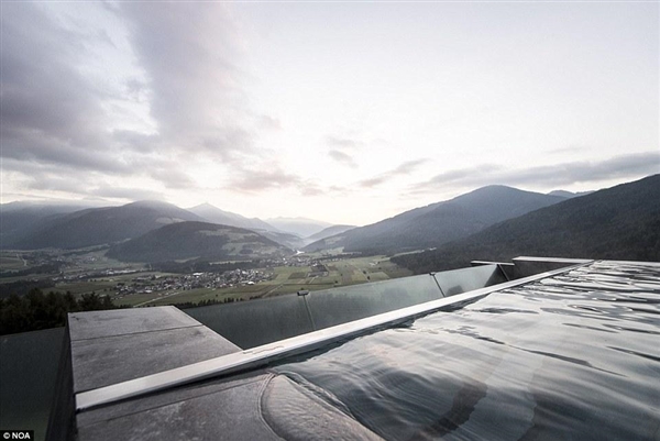 《每日郵報》報道稱,這個游泳池位于意大利南蒂羅爾(South Tyrol)的一家酒店內,其距離地面約12.2米高,池底部分使用玻璃面板,在泳池內可以俯瞰整個雪山。