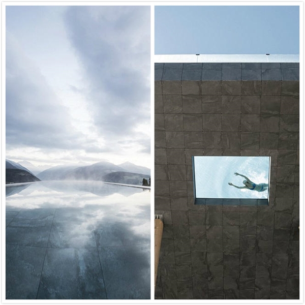 該泳池由建筑工作室Noa設計,其目的是模糊物理限制,與景觀交織在一起,利用鏡像云層和構筑全景,給游泳者以在天地之間自由浮動的感覺。