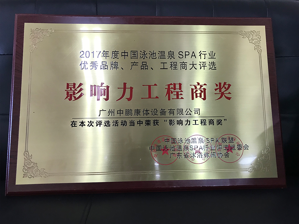 廣州中鵬康體設備有限公司榮獲——2017年度中國泳池溫泉SPA行業最高榮譽大獎《影響力工程商獎》